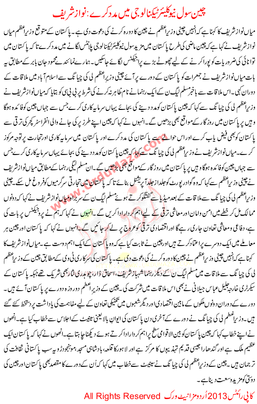 Nawaz Sharief Said That China Should Help In Civil Nuclear Technology