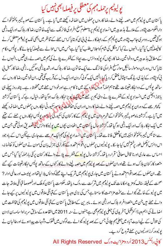 Polio Team Per Hamla Mohim Ki Moatali Per Faisla Abhi Nahi Kya