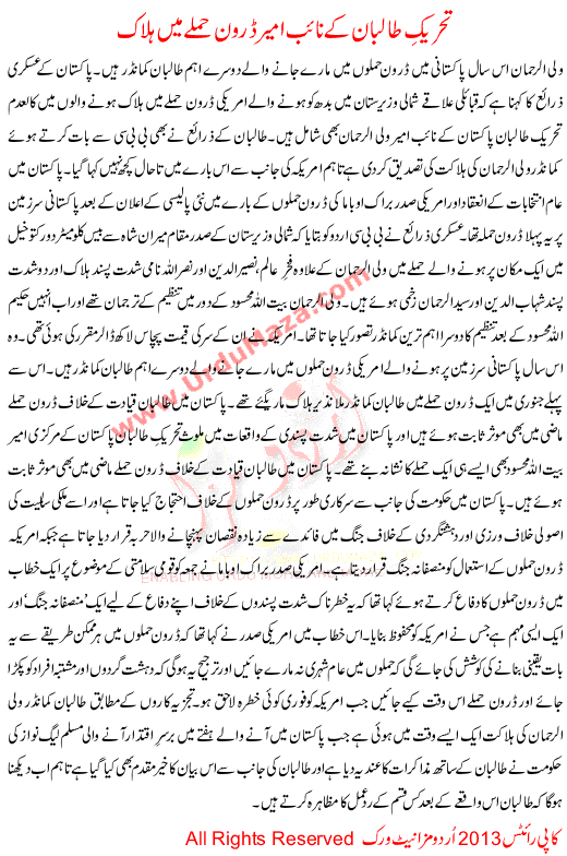Tehrek E Talban K Naib Ameer Droon Hamle Me Halak