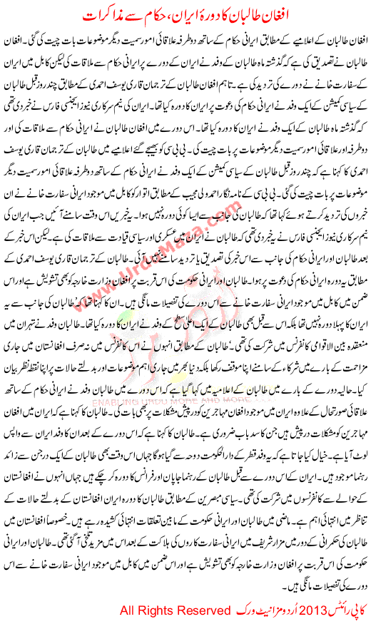 Afghan Talban Ka Dora E Iran Hukam Se Muzakrat