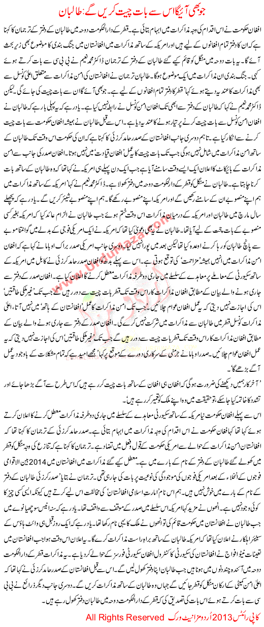 Taliban Said That Who Will Come To Us ,we Will Talk With Them.
