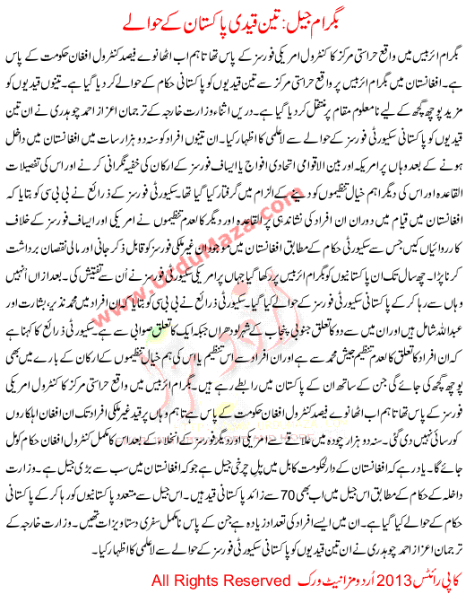 Bagram Jail Hands Over 3 Prison To Pakistan