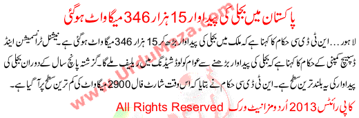 Pakistan Me Bijli Ki Peedawar 15 Hazar 345 Megawatt Ho Gaye