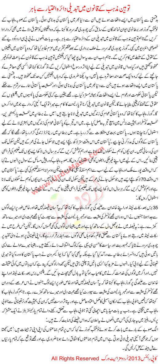 Toheen K Qanoon Me Tabdeeli Daira Ikhtyar Se Bahir