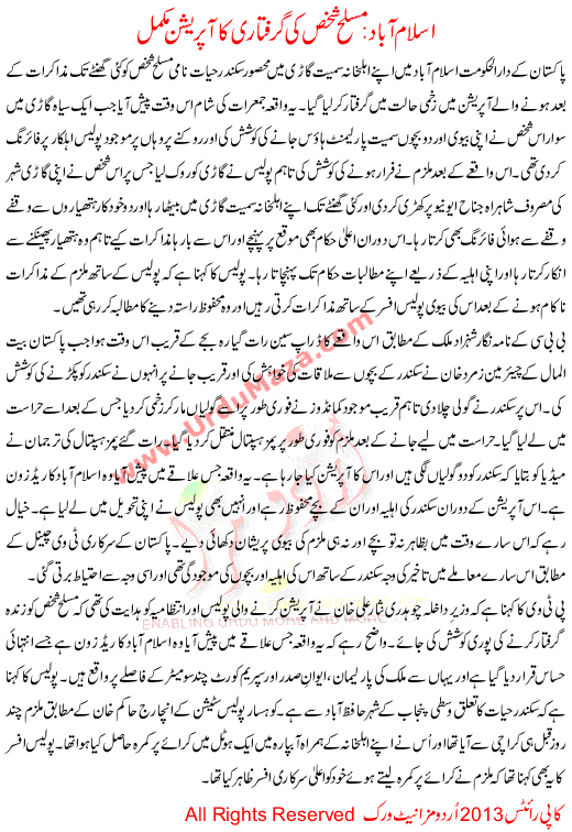 Musala Shakhs Ki Griftari Ka Operation Mukamal Islamabad