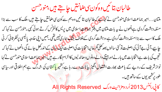 Talban Btaye Wo Kon Si Zmante Chahte Hai Munawar Hassan