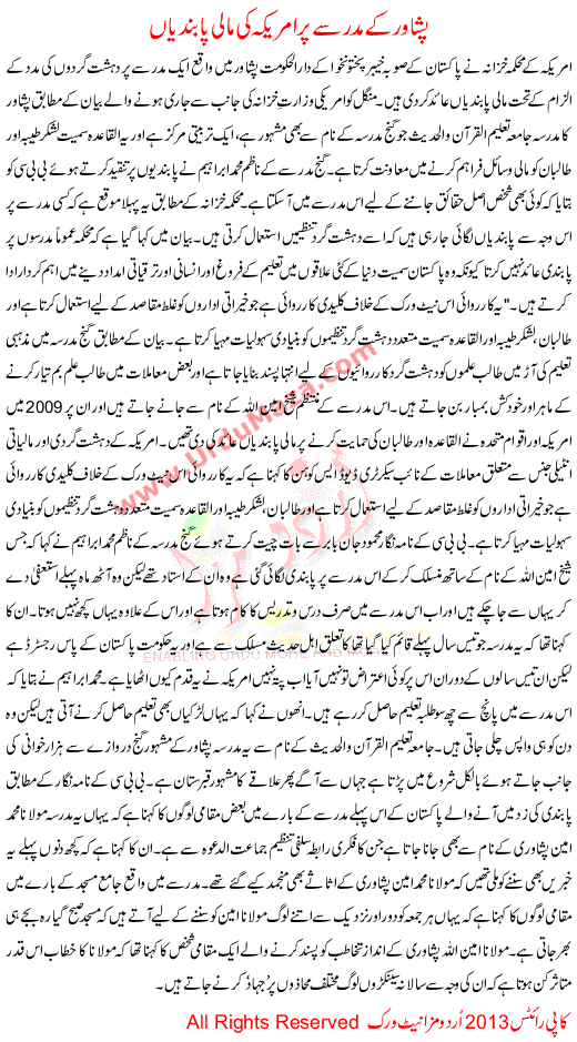 Peshawar K Madrise Per America Ki Maali Pabandia