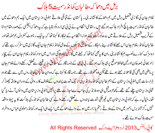 Barmal Me Dhamaka Talban Comander Sameet 5 Halak