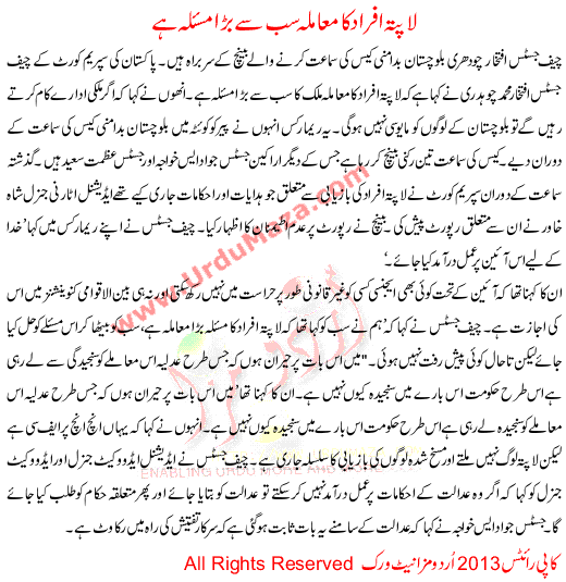 The Supreme Court Of Pakistan Has Directed The Police, Fc And Agencies To Present A Report Regarding The Missing Persons