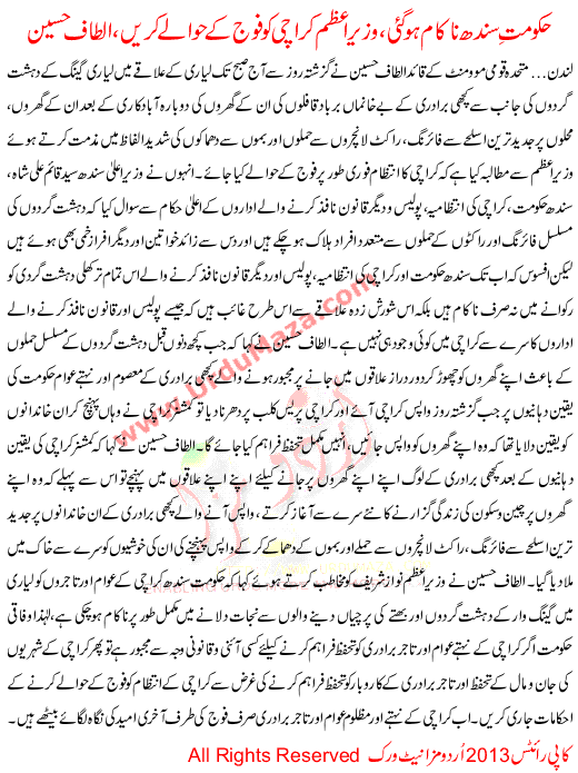 Altaf Hussain Demands Army Take Control Of Karachi's Administration