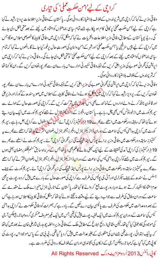 Karachi K Aman K Lye Aman Hikmat E Amli Ki Tyari