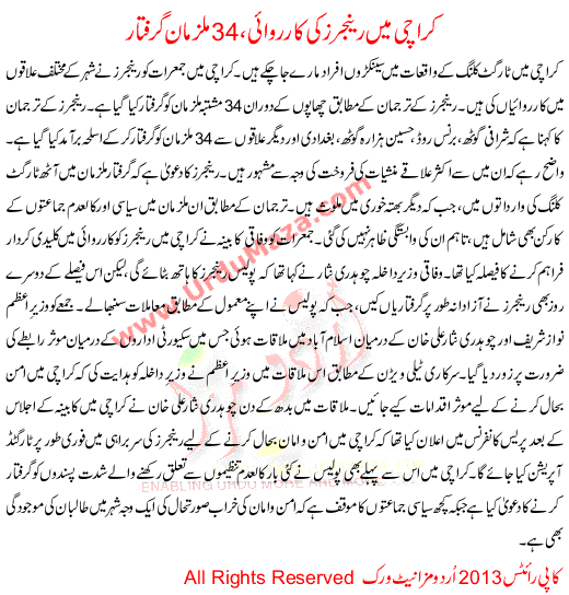 Karachi Me Ranjers Ki Karwaye 34 Mulzman Griftar