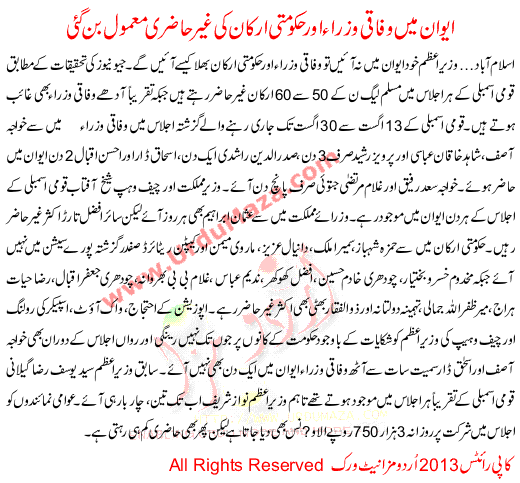 Awan Me Wafaqi Wuzra Or Hakoomti Arkan Ki Gher Hazri Mamool Bn Gaye