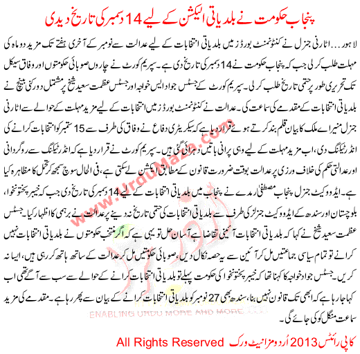 Punjab Hakoomat Ne Baldyati Election K Lye 14 December Ki Tareekh Dedi