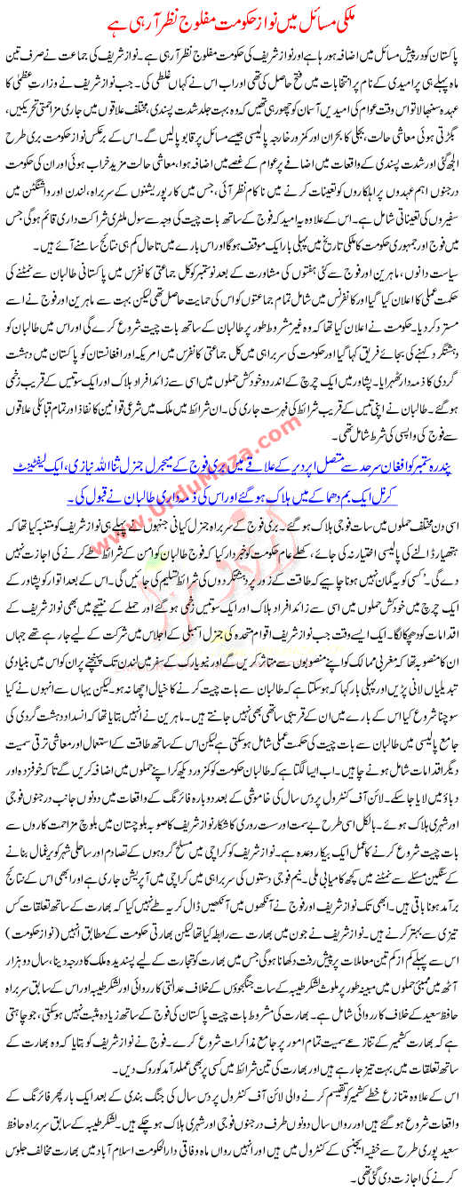 Mulki Msail Me Nawaz Hakoomat Maflooj Nazar Arai Hai B