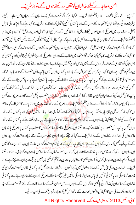 Aman Mahde K Lye Talban Ko Hathyar Rakhne Honge Nawaz Sharief