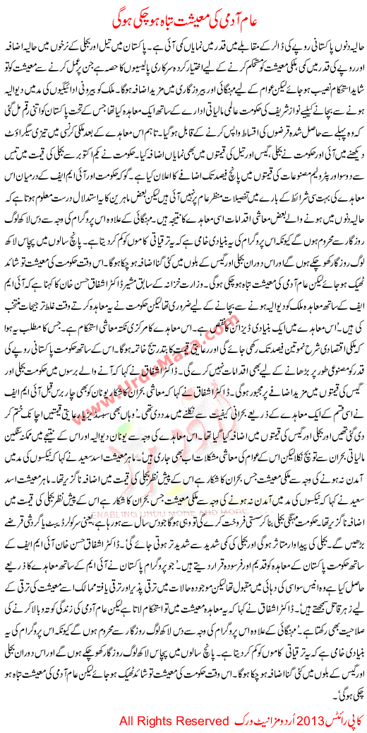 Aam Aadmi Ki Mashiat Tbah Ho Chuki Hogi