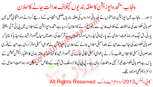 Muthada Opposition Ka Halqa Bandio K Khilaaf Adalat Jane Ka Elaan Punjab