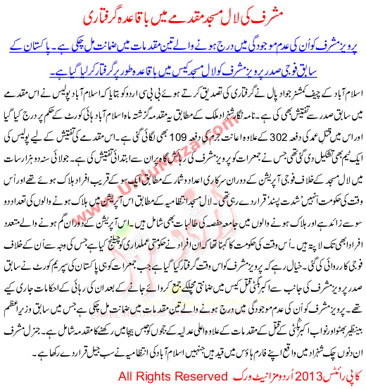 Musharaf Ki Laal Masgid Muqadme Me Baqaida Griftari