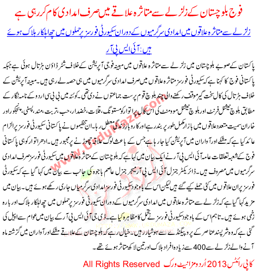 Foj Balochistan Me Sirf Imdad Ka Kam Kr Rahi Hai