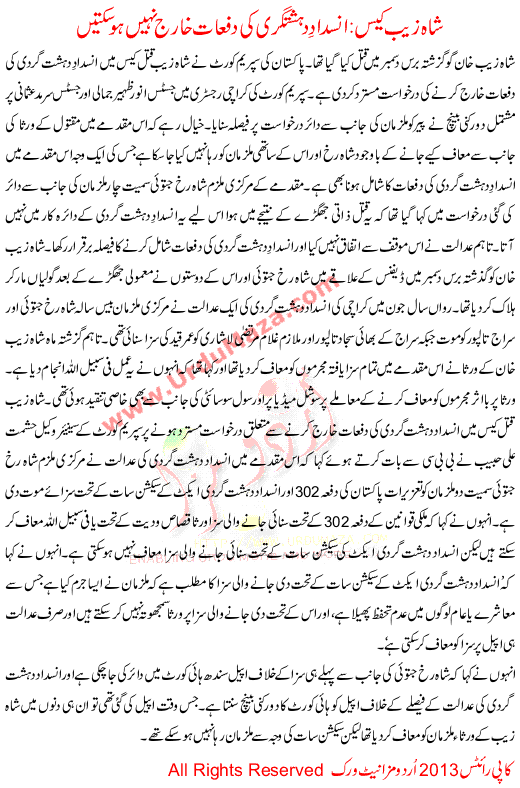 Insdad E Dehshat Gardi Ki Deefat Kharj Ni Ho Sakti Shahzeb Case