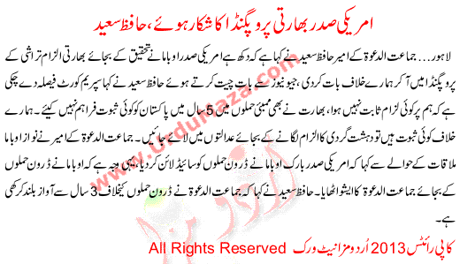 Amrici Sadar Barak Obama Bharti Propagenda Ka Shikaar Howe Hafiz Saeed