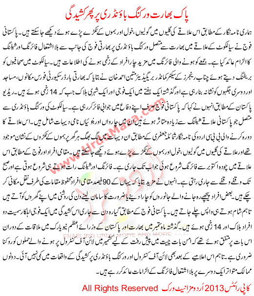 Pak Bharat Working Boundary Per Phir Kashedgi