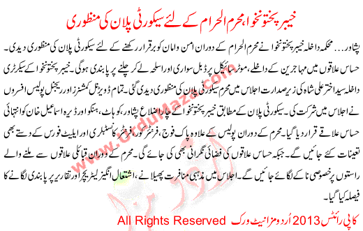 Muharam Ul Haram K Lye Security Plane Ki Manzoori Kpk