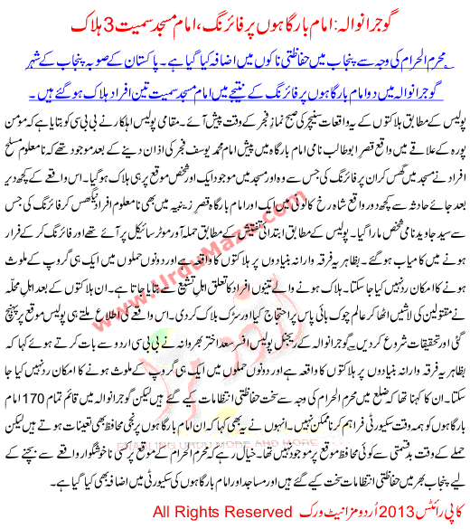 Firing On Imam Bargahs 3 Killed With Masjid Gujranwala