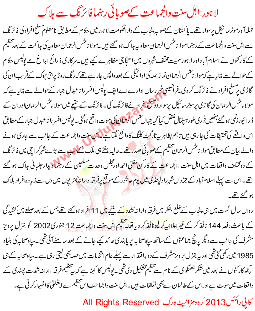 The Provincial Leader Of Sunni Were Killed In Firing Lahore