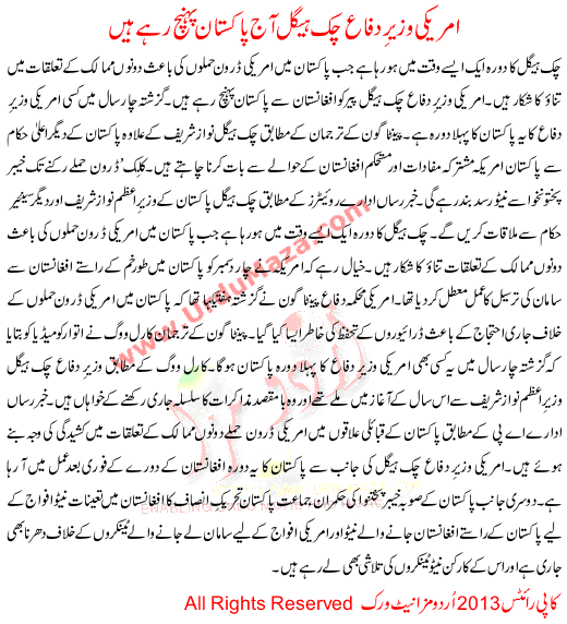 U.s. Secretary Of Defense Chuck Hagel Is Arriving In Pakistan Today