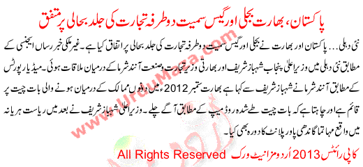 Pakistan-india Bilateral Trade, Including Electricity And Gas Agreed On Early Recovery