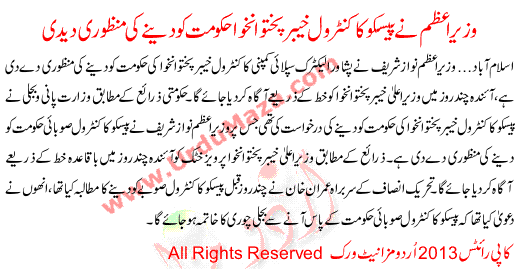 Wazer E Aazem Ne Pesco Ka Controle Kpk Govt Ko Dene Ki Manzoori Dedi