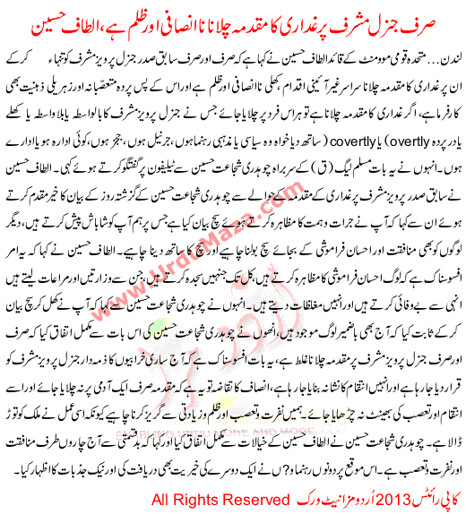 Only General Musharraf's High Treason Trial Injustice And Cruelty