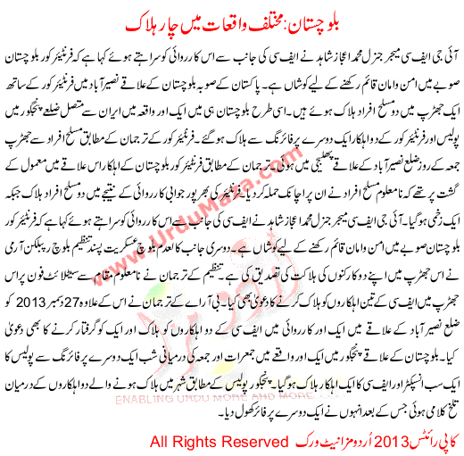 Four Killed Separate Incidents In Balochistan