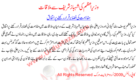 Prime Minister Gillani And Chief Minister Of Punjab Shahbaz Sharif Meeting