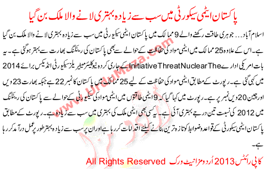 Pakistan Has Become A Country Of Most Improvement Nuclear Security