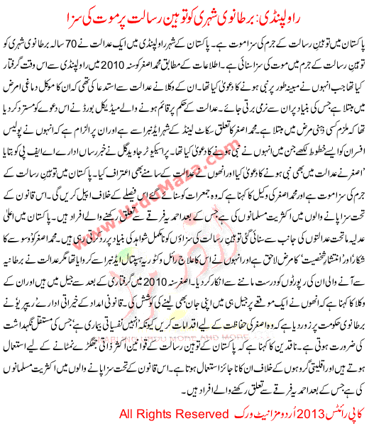 British Citizen Sentenced To Death For Blasphemy Rawalpindi