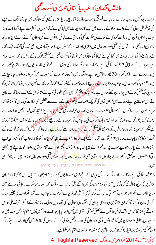 Pakistani Military Strategy Is Reason For Losses In Fata
