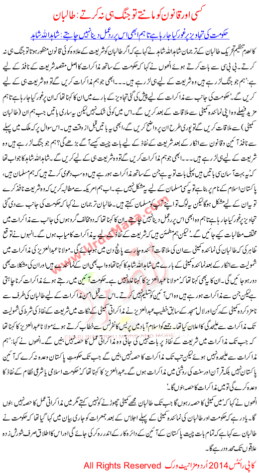 Kisi Or Qanoon Ko Mante To Jang Hi Na Karte Talban