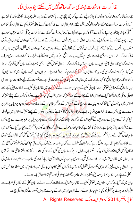 Negotiation And Extremism Can Not Go Along With Ch Nisar