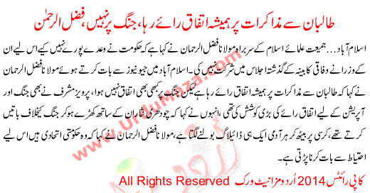 Always Been Consensus On Talks With Taliban Fazl Ur Rehman