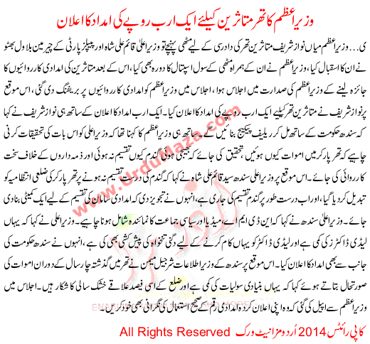 Prime Minister Announced A Grant Of Rs One Billion For Victims In Thar