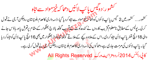 Kashmore Two Gas Pipelines Destroyed With Explosives