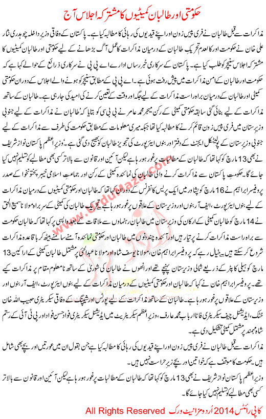 Today Combine Meeting Between Govt Comitee And Talban Comitee