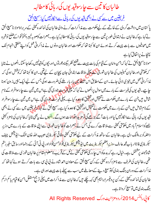 Talban Demand Our Three Or Four Hundrad Prisoners Release