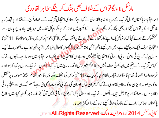 We Will Also Fight Agt Marshal Law Tahir Ul Qadri