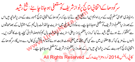 Results Of Sargodha Nawaz Sharif Should Resign Sheikh Rasheed