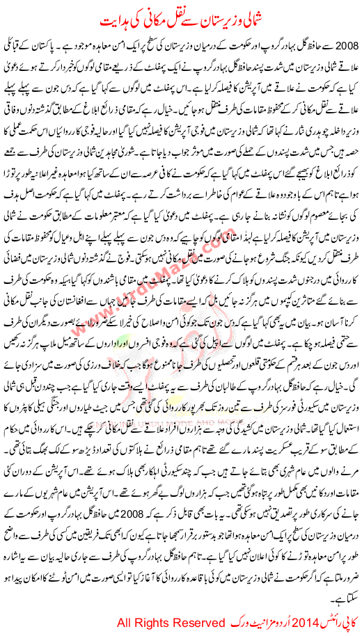 Advice Displacement From North Waziristan