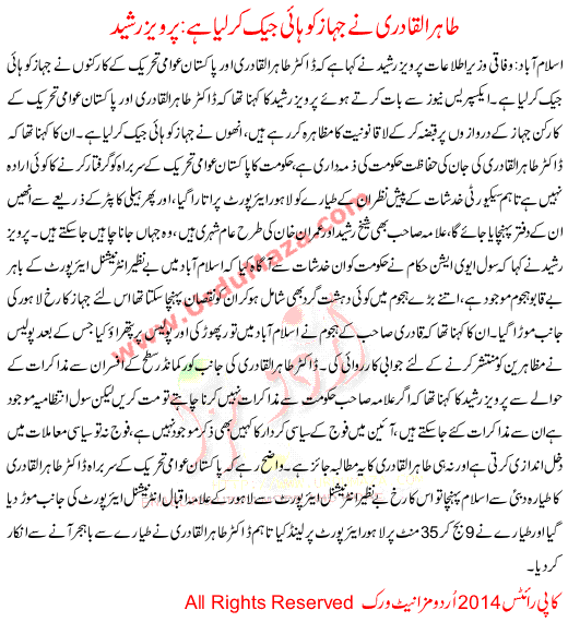 Tahir-ul-qadri Hijacked Aeroplane Parwez Rasheed